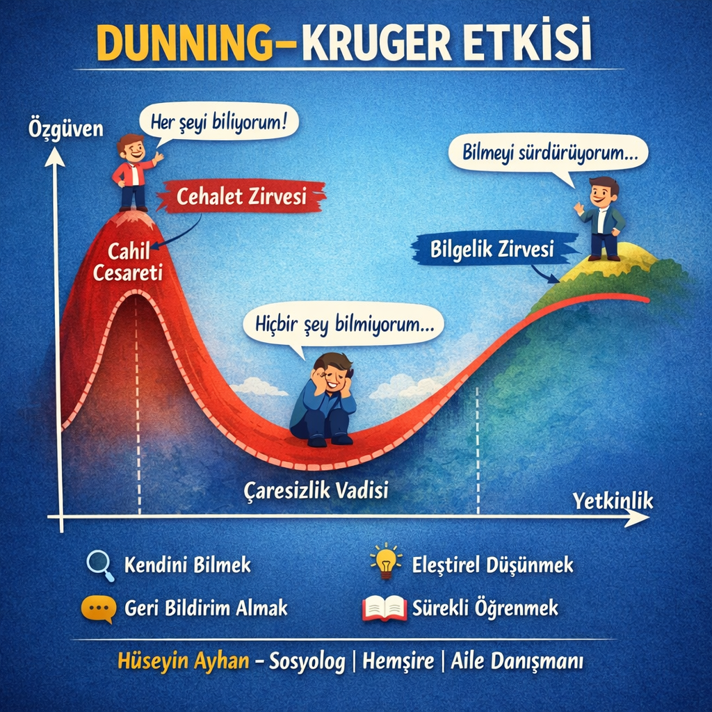 Dunning–Kruger Sendromu Toplumda Neden Artıyor? Dunning–Kruger sendromu, bireyin bilgi ve beceri düzeyi düşük olmasına rağmen kendisini olduğundan daha bilgili ve yetkin